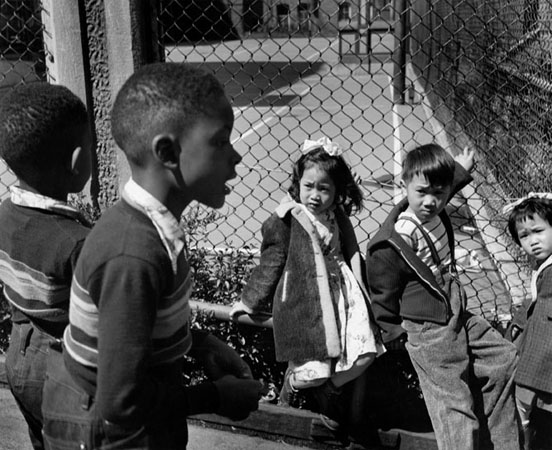 Black and Asian children at playground, from Children - They Grow in The City, North Beach, San Francisco, 1947