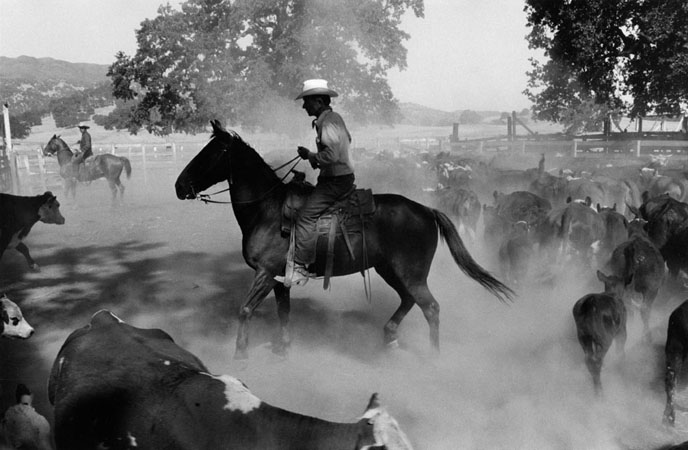 Buck Hannackle on horse during cattle roundup, Berryessa Valley, 1956