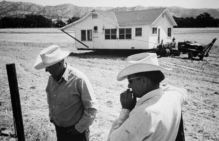 House being moved, Berryessa Valley, 1956