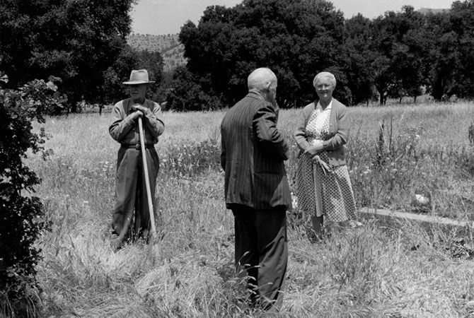 Last Memorial Day, Foster Clark with shovel, Perrine Swift Clark, Berryessa Valley, 1956