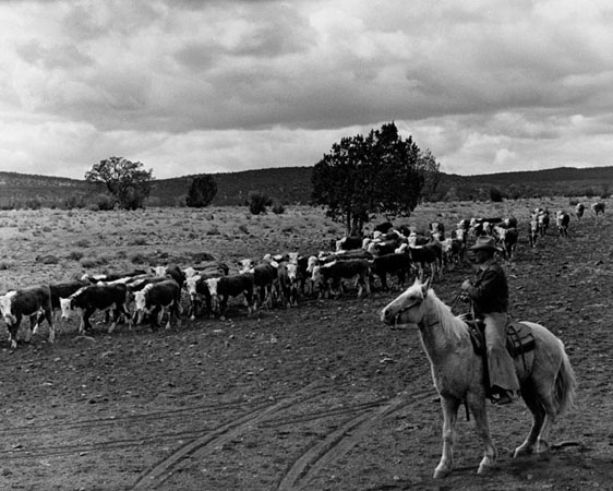 Cowboy herding dogies, Kern County Land Co., Arizona, 1957